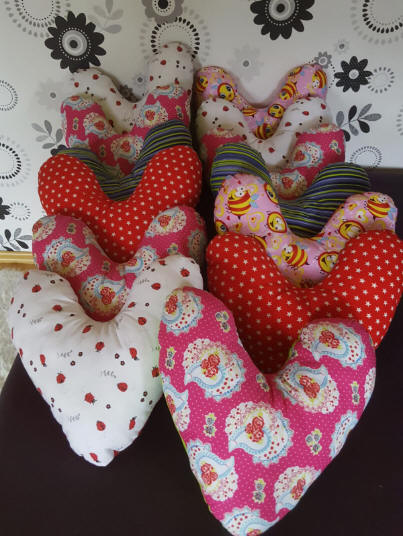 14 fertige wunderschöne Herzkissen