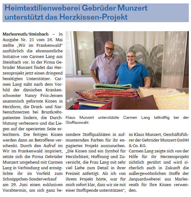 unterstützten das Projekt mit Kissenspenden direkt an die Klinik